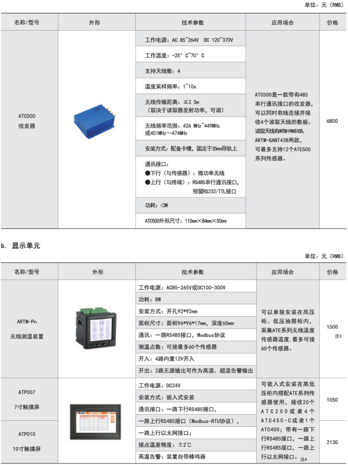 綜上所述,確定型號為:無線測溫裝置:ARTM-P9-300,1臺;無線測溫傳感器:ATE300,9個