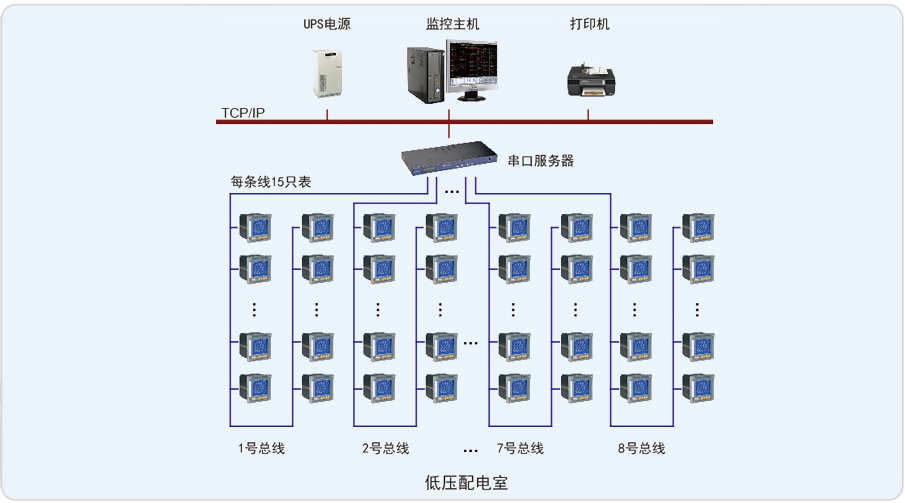 淄博歐木特種紙業(yè)有限公司四期電力監(jiān)控系統(tǒng)針對淄博歐木特種紙業(yè)有限公司內(nèi)四期低壓配電室開關(guān)柜內(nèi)安裝的約120只安科瑞智能電力儀表,監(jiān)控室位于配電室內(nèi)。為滿足配電室統(tǒng)一監(jiān)控的要求,配電室現(xiàn)場安裝安科瑞公司網(wǎng)絡(luò)電力儀表通過屏蔽雙絞線手拉手相連至串口服務(wù)器,串口服務(wù)器通過五類線接入后臺主機(jī),進(jìn)行數(shù)據(jù)傳輸。