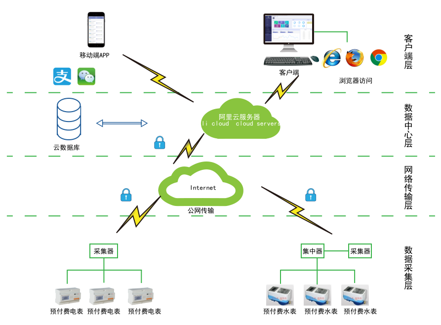 對于分布不同省、地市或同地市不同區(qū)域的連鎖商業(yè)、集團、百貨、門店、物業(yè)、院校等業(yè)務(wù)分散,要求集中管理、線上支付,低額提醒、欠費告警。但常規(guī)的本地插卡付費、本地預(yù)付費并不能完全滿足客戶管理需求,預(yù)付費云平臺應(yīng)運而生。AcrelCloud-3200水電預(yù)付費云平臺無縫集成商業(yè)、物業(yè)公司、集團企業(yè)、院校等分散布置的安科瑞DDSY/ADF系列電子式預(yù)付費電能表、閥控智能水表等,提供微信、支付寶、銀聯(lián)等可選的在線支付方式,大大方便了用戶充值、圈存,提供預(yù)警和充值、退費、電能消耗等記錄查詢,方便用戶和管理方的數(shù)據(jù)統(tǒng)計和財務(wù)分析,提供先交費后使用的管控機制,大大降低了管理部門的收費成本。應(yīng)用場所: